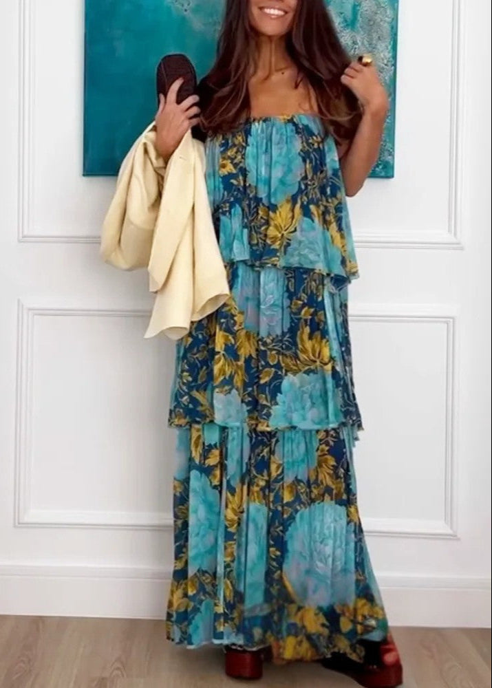 Robe Longue Beleue Romantique Sans Bretelles pour la Plage – Élégance Décontractée