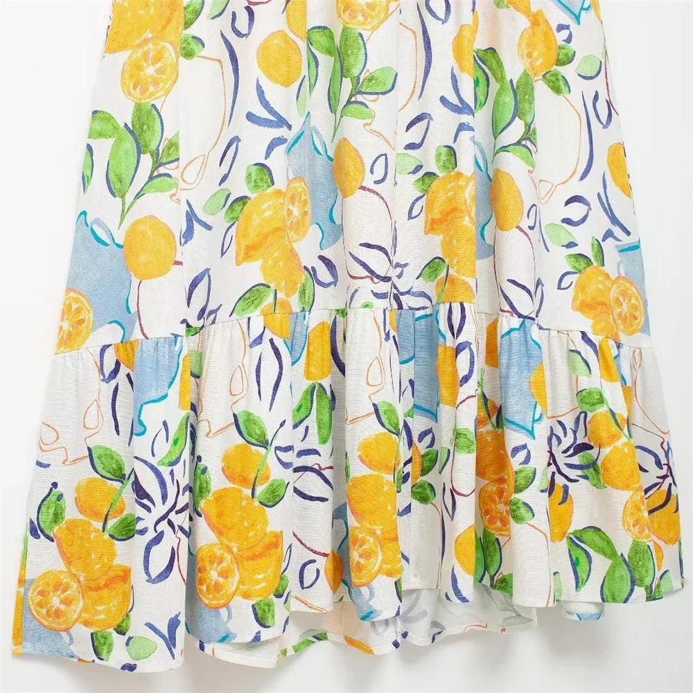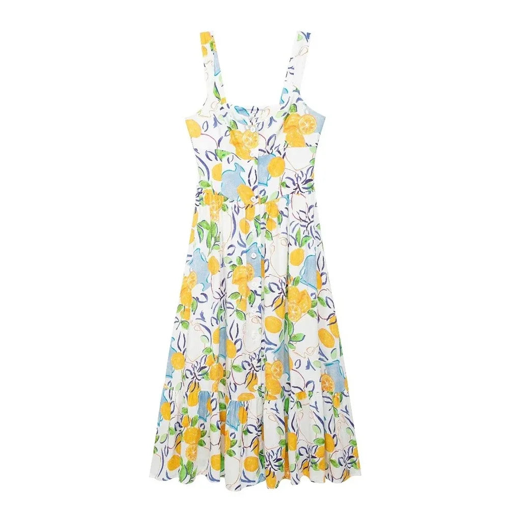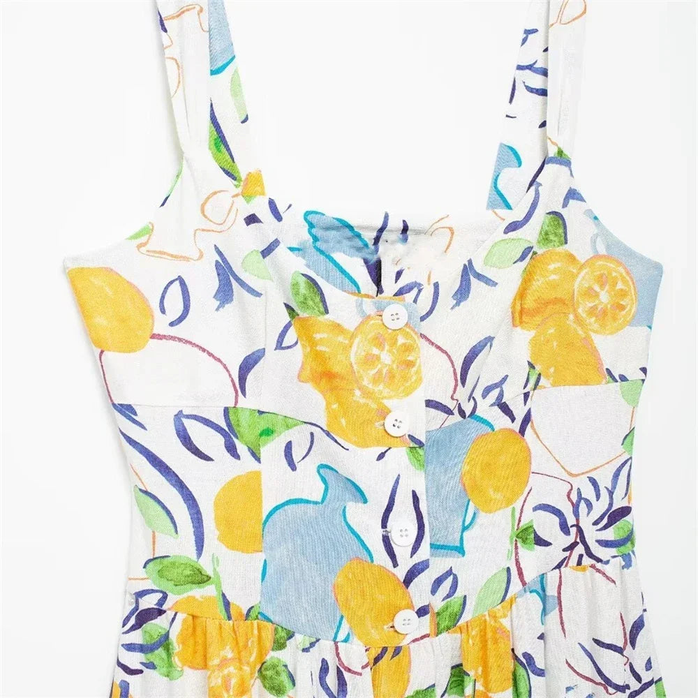 Cette robe printanière florale blanche et jaune pour femme est la pièce parfaite pour un look frais et lumineux. Conçue dans un tissu léger en polyester, spandex et microfibre, elle offre un confort optimal tout au long de la journée. Son imprimé citron sur fond blanc évoque la douceur des beaux jours, tandis que ses bretelles fines et ses boutons le long de la robe ajoutent une touche de charme et de féminité. Idéale à porter lors d’un temps ensoleillé, cette robe met en valeur la silhouette avec élégance et simplicité.