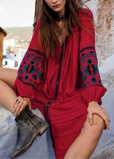 Bohemian Midikleid mit floraler Stickerei – Lässige und schicke Eleganz
