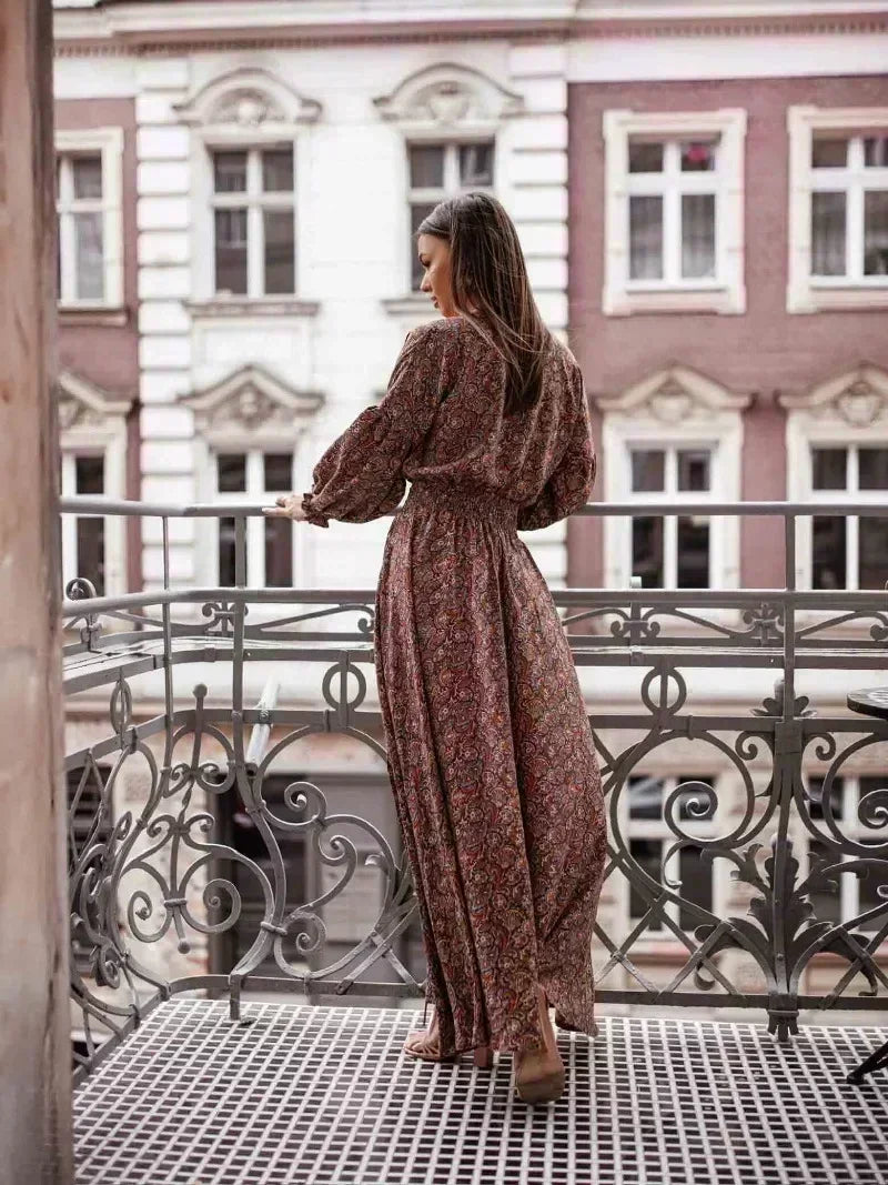 Trendiges Vintage-Kaffeekleid für Damen mit aufgedrucktem Design und modernem Schnitt für einen raffinierten Look