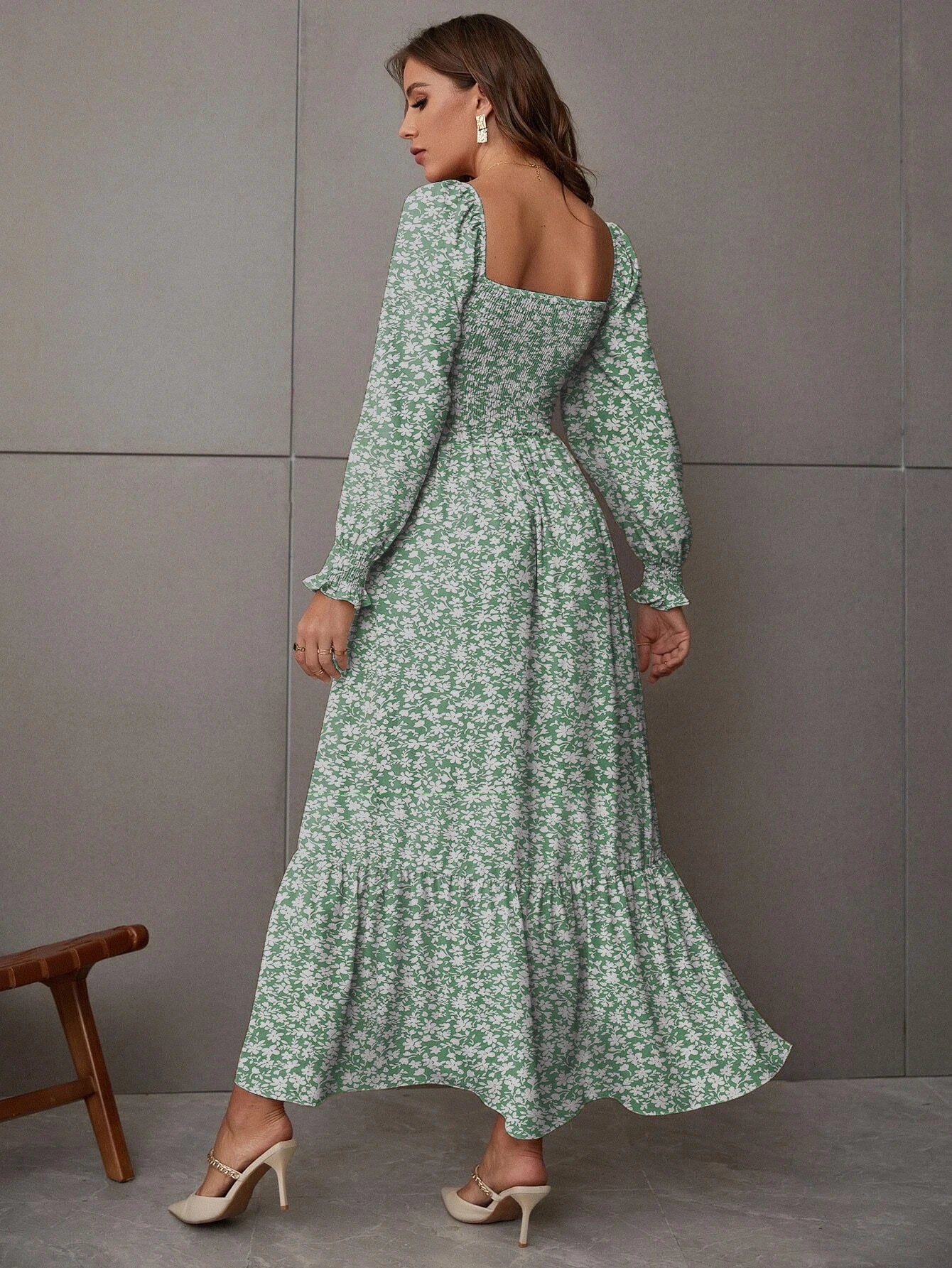 La robe bohème verte pour femme manches longues est l’alliance parfaite entre confort et élégance. Confectionnée en polyester et spandex, elle garantit légèreté, souplesse et une tenue impeccable. Sa longueur cheville et sa silhouette A-line apportent une allure fluide et féminine, tandis que son col carré raffiné souligne le port de tête avec subtilité. Dotée de manches longues lanterne et de jolis volants décoratifs, cette robe reflète l’esprit bohème chic, idéal pour la saison automne. Son motif floral tendance vient compléter son design en apportant fraîcheur et élégance naturelle. Polyvalente, cette robe s’adapte aussi bien à un style quotidien décontracté qu’à une tenue élégante pour vos sorties spéciales.
