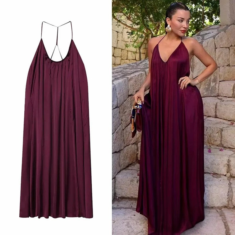 Robe Chic en Satin Sans Manches à Col Halter – Élégance Moderne