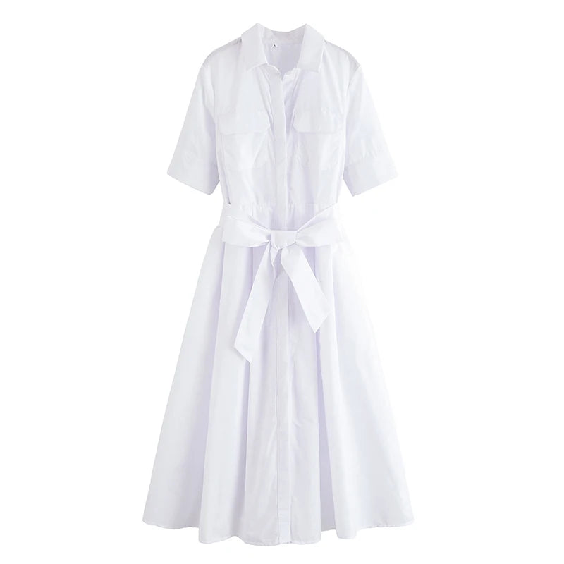 Découvrez une robe longue style chemise à boutons et ceinture ajustable, idéale pour sublimer la silhouette avec élégance et simplicité