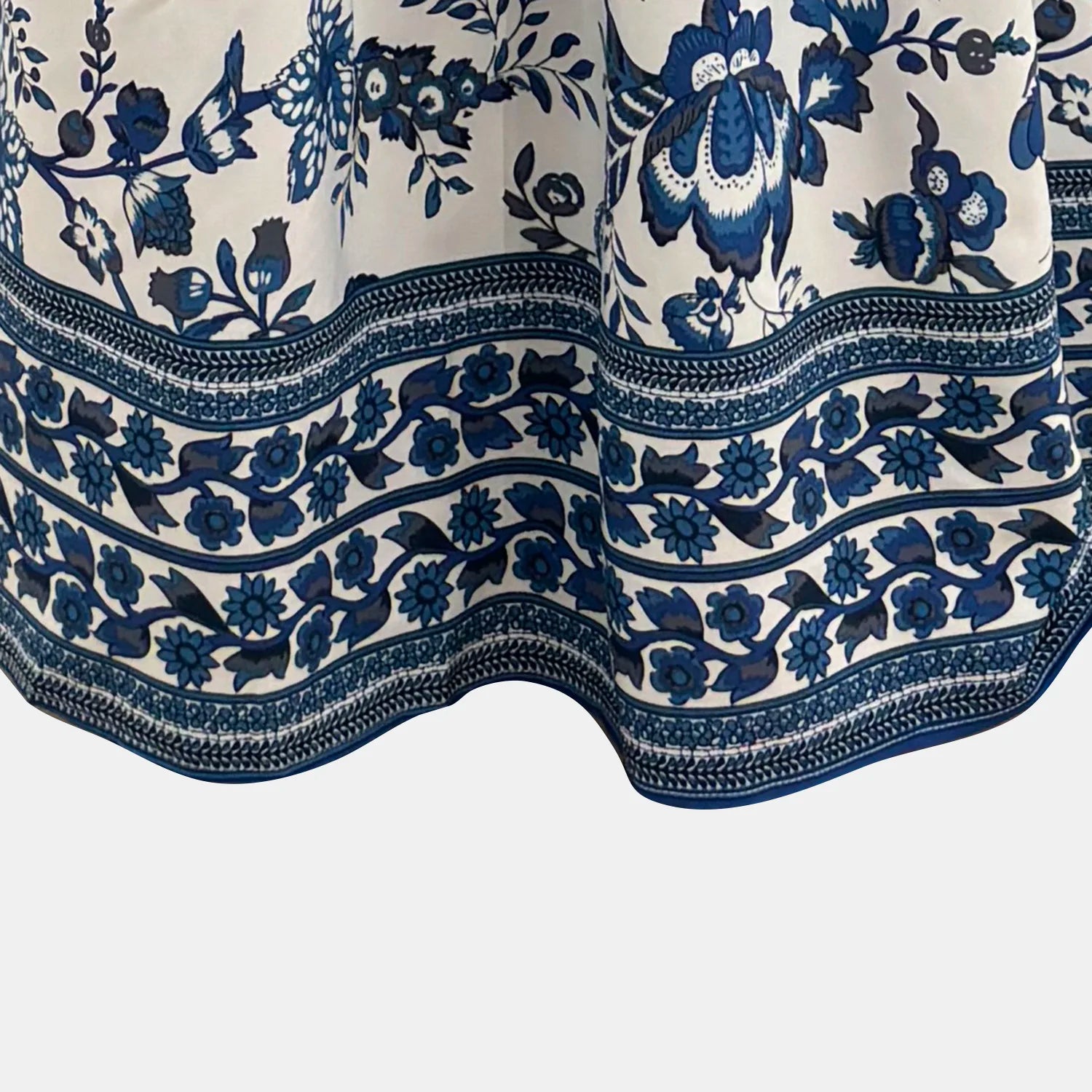 Découvrez la robe chic blanche et bleue à motifs de fleurs, une robe longue imprimée au style bohème chic qui allie féminité, confort et allure naturelle