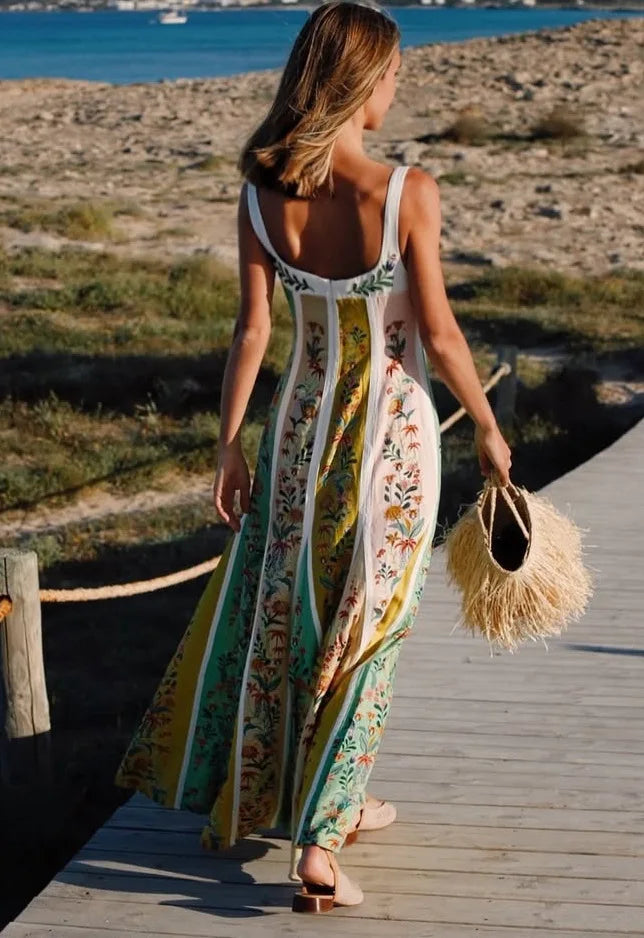 Women Spring Summer New Camisole Floral Flower Linen Printed Dress Loose Vacation Dress Sleeveless High Waist Maxi
